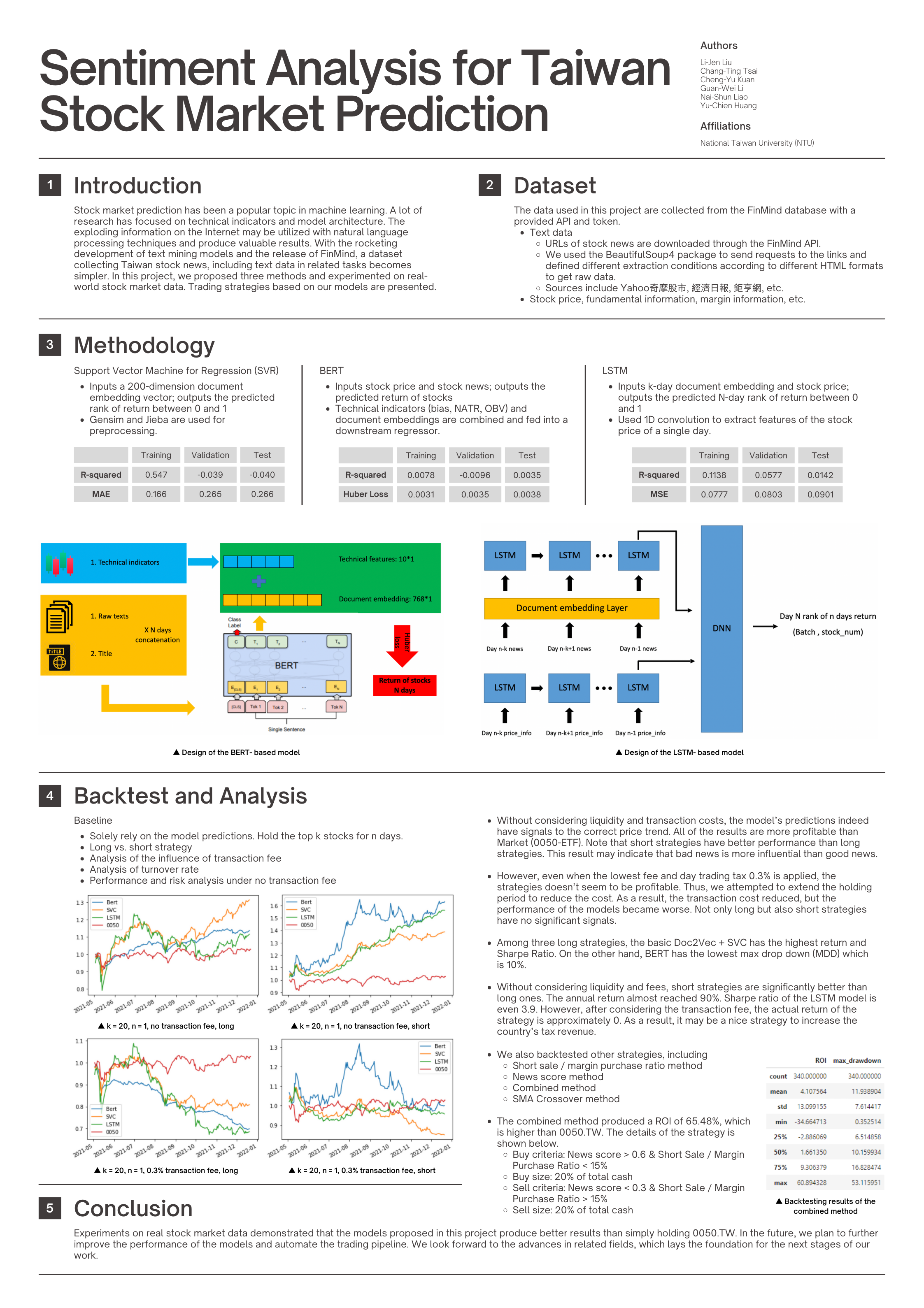 Modeled stock market trends by integrating technical analysis and NLP techniques.